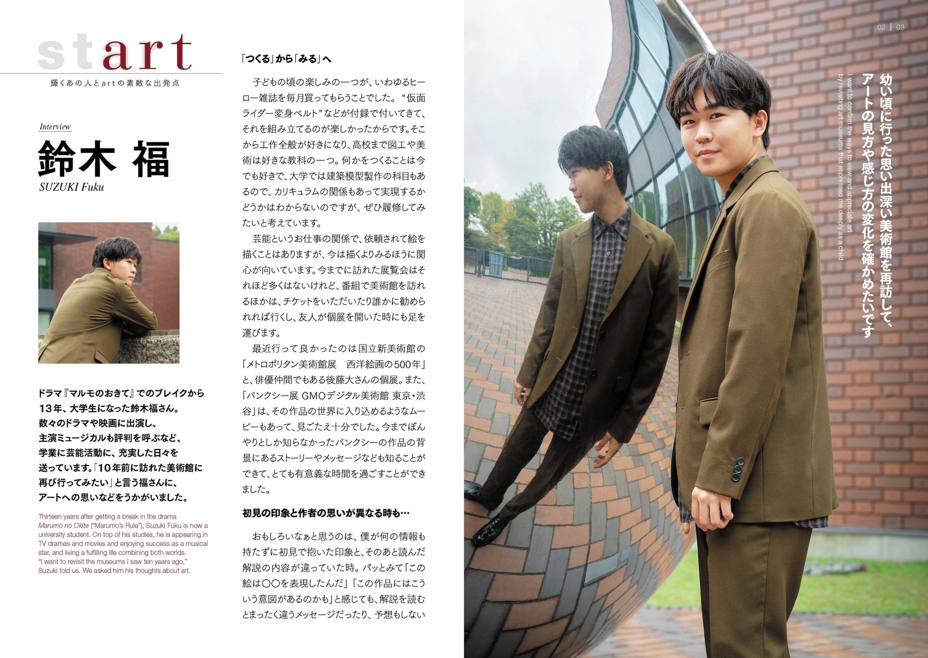 撮影スポットとしても多くの方に親しまれている東京都美術館正面の銀色の球体(井上武吉《my sky hole 85-2 光と影》1985年)に映るのは、6月に20歳の誕生日を迎える鈴木福さん。広報誌「東京都美術館ニュース」最新号(No.477)では、学業に芸能活動にと充実した日々を送る鈴木さんへのインタビュー記事を掲載。広報誌は館内での配架のほかHPでも公開。是非ご覧ください。