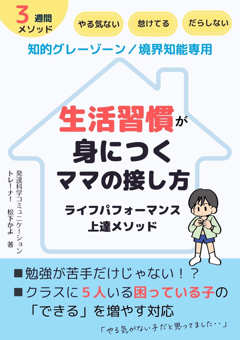 この小冊子では生活習慣を身につけるママの接し方がわかり、ママ任せのお子さんが自分でできる子に変わる方法をお伝えします。 自分でできることが増えて行動の量が増えると脳の成長スピードが加速するので、困りごと軽減させるだけでなくお子様が持っている本来の力を発揮するようになります。 親子でストレスなくお子さんが自分でできる子に変わる。 ママも子どももラクなのに日々のパフォーマンスが上がる。 効果抜群の接し方をこの小冊子で知っていただけたら嬉しいです。