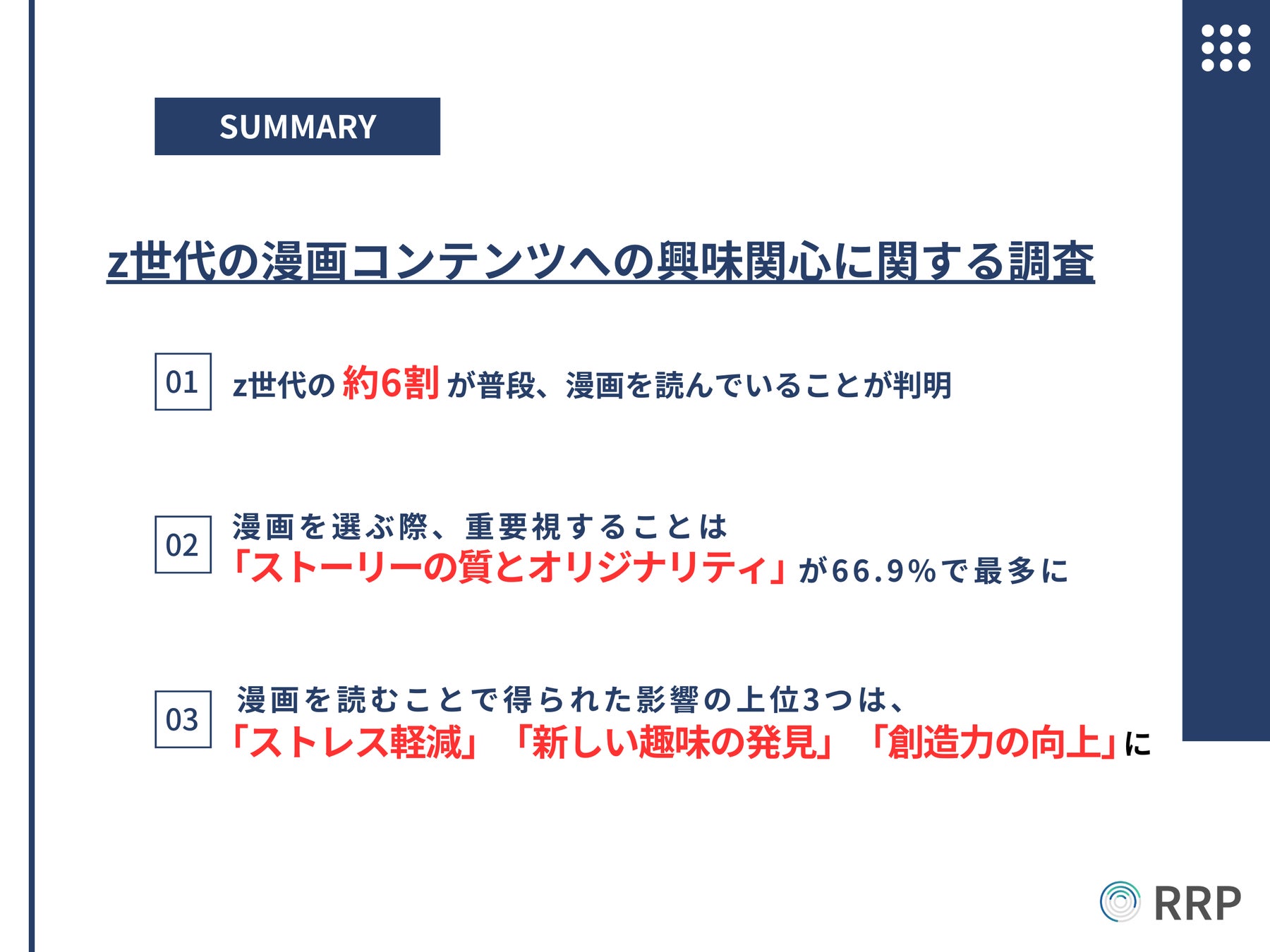 調査概要:z世代の漫画コンテンツへの興味関心に関する調査