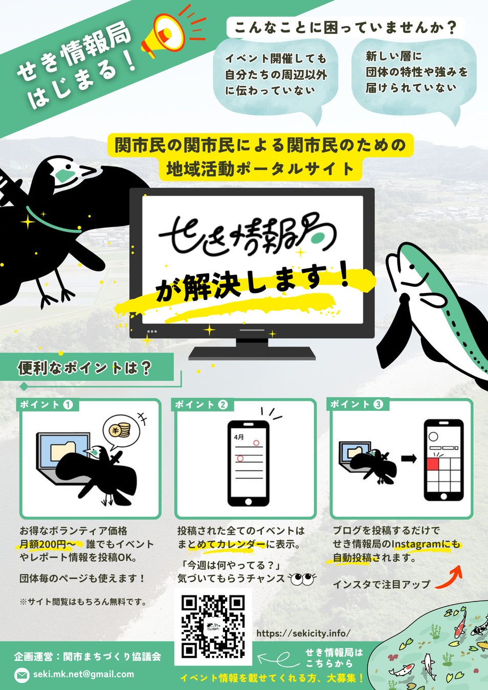 こうした状況を打開するため、「関市市民活動助成金」をいただいて制作した地域情報ポータルサイトが「せき情報局」です。
