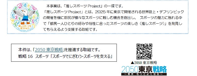 同会場では、今年度東京都で開催される東京2025世界陸上競技選手権大会及び第25回夏季デフリンピック競技大会 東京2025のコーナーも設置し、競技体験やマスコットグリーティングを実施します。