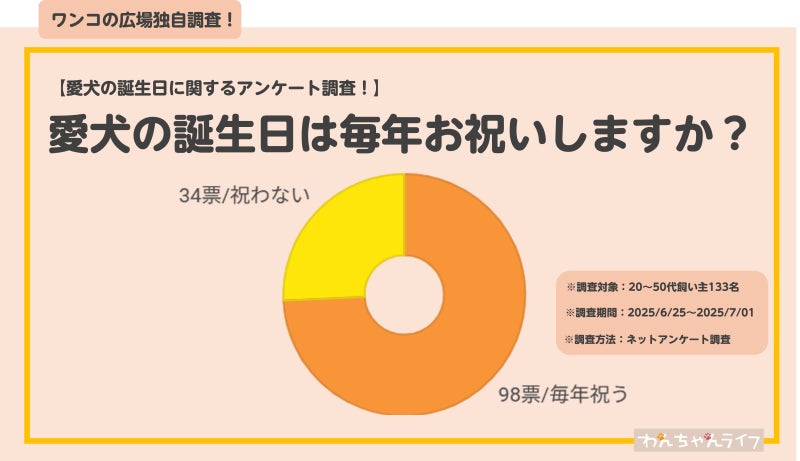 愛犬の誕生日を毎年お祝いしている飼い主さんは、なんと全体の約74%(98人)にも上りました。