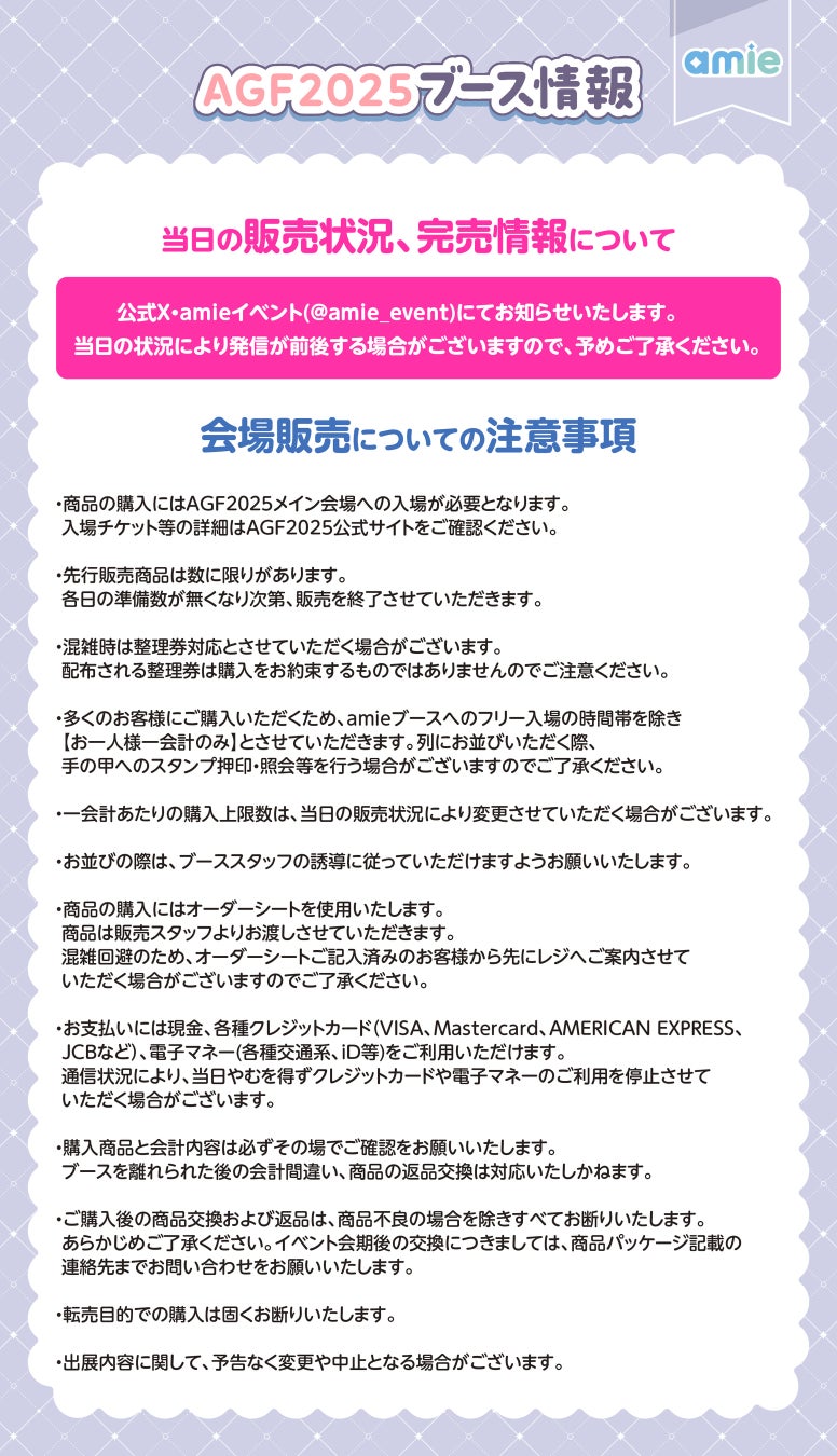 大網株式会社のオリジナルグッズブランド「amie(アミィ)」のイベント用アカウント(@amie_event)にて「あみあみAGF2025情報」を定期的にお伝えしています。