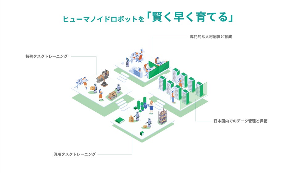 本プロジェクトでは、ヒューマノイドロボット専用フィジカルデータ生成センターを2026年春頃に構築し、最大50台のヒューマノイドロボットが同時稼働する大規模なトレーニング環境を実現します。