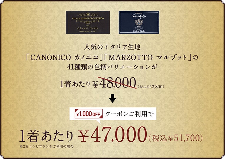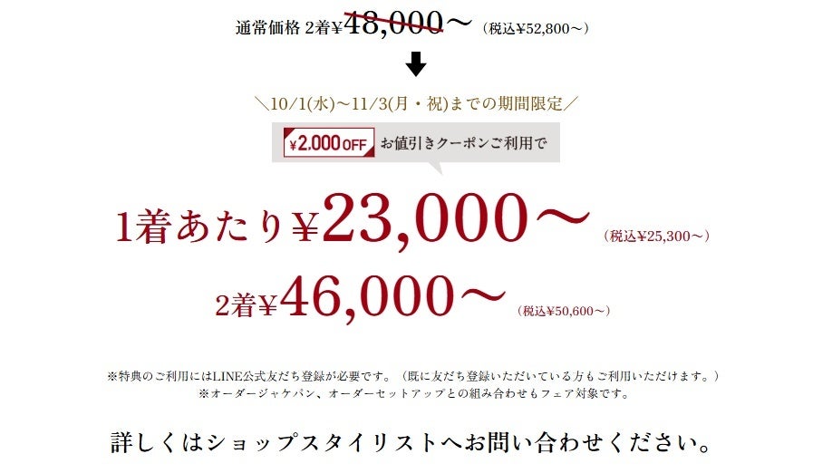 【オーダースーツ2着コンビフェア特典】