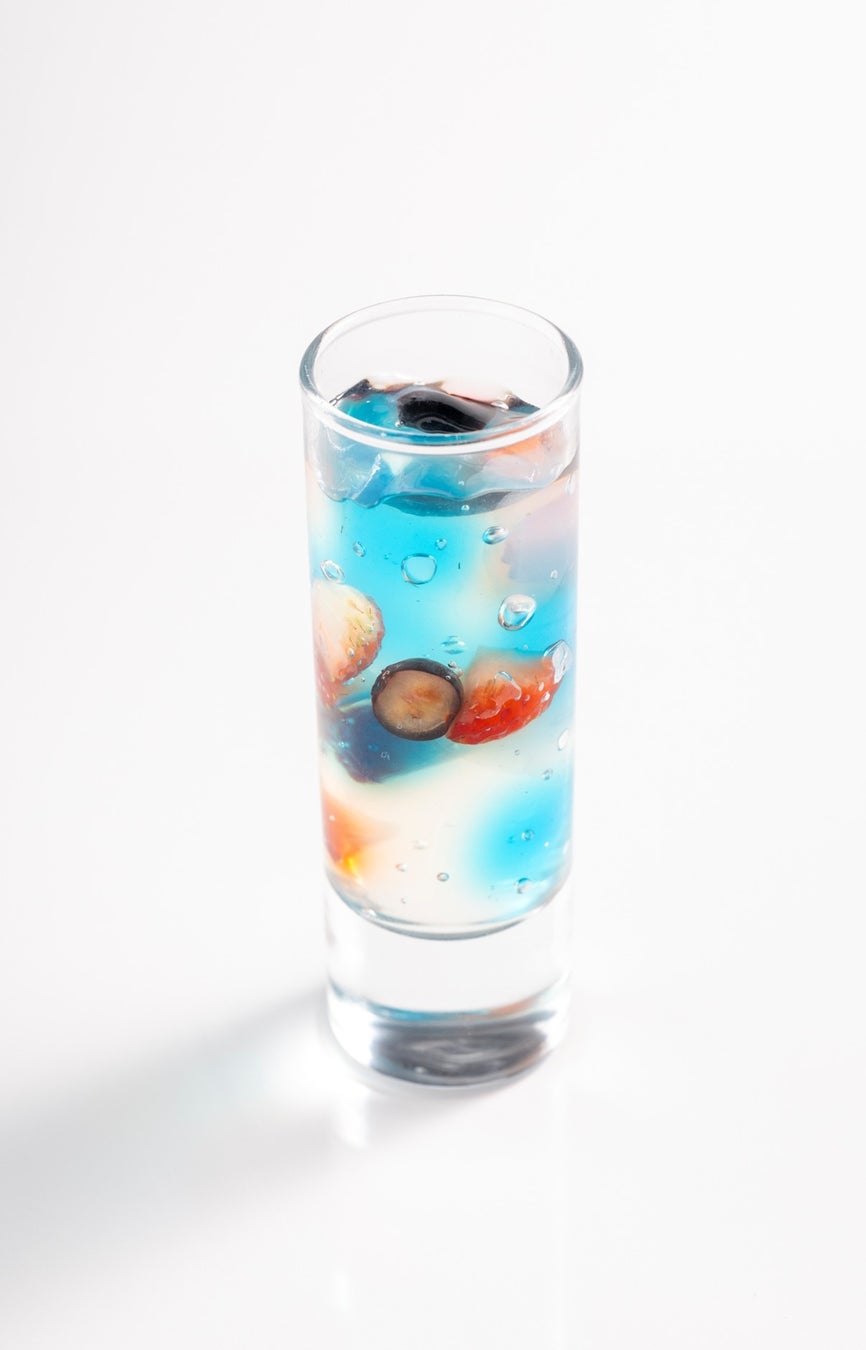 澄んだ空気に包まれる軽井沢をゼリーや柚子の琥珀糖で表現した一品