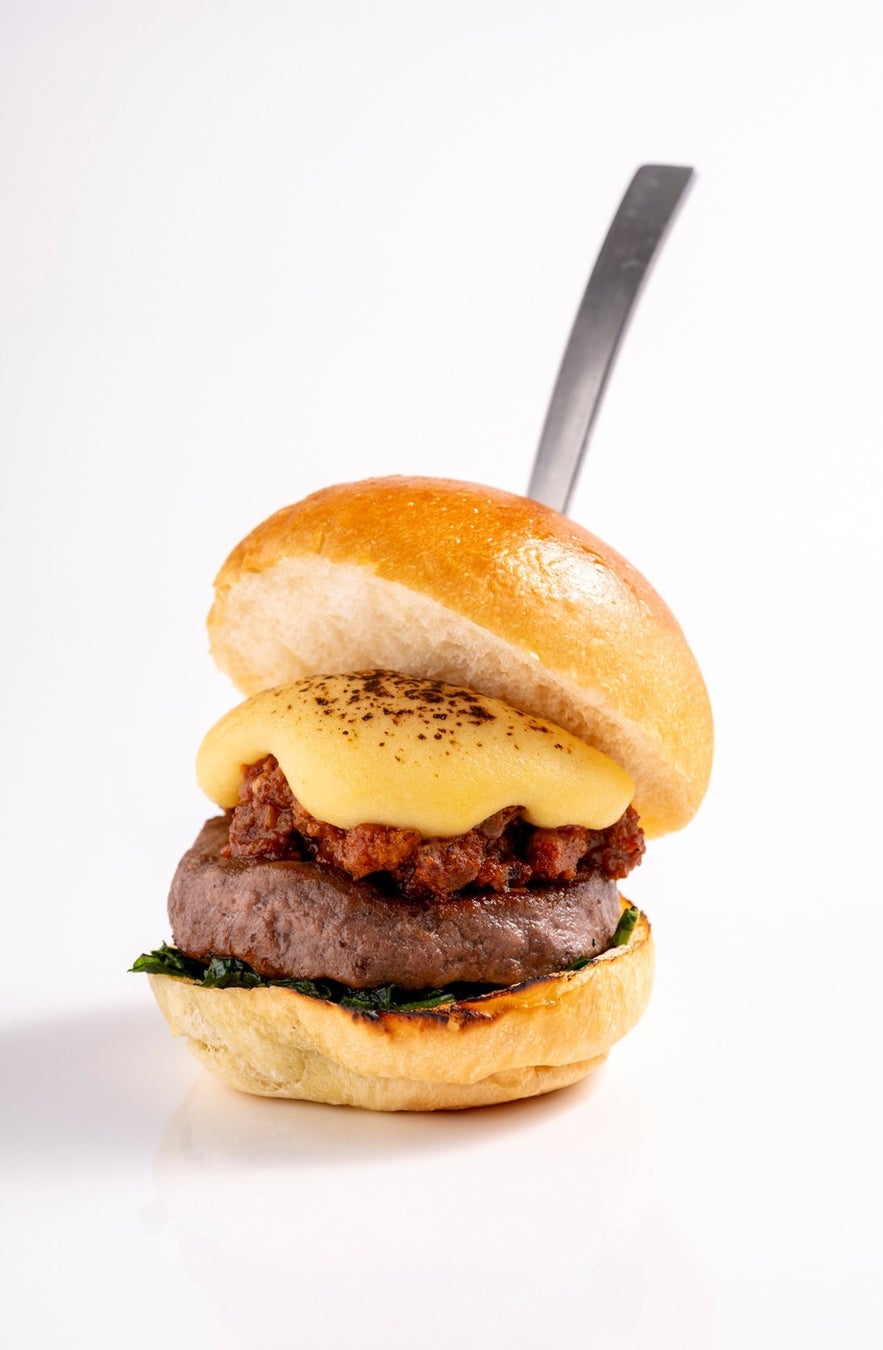 信州牛のパティにボロネーゼやマッシュポテトなどを使用し、「濃厚で温かみのある味わい」を目指したバーガー
