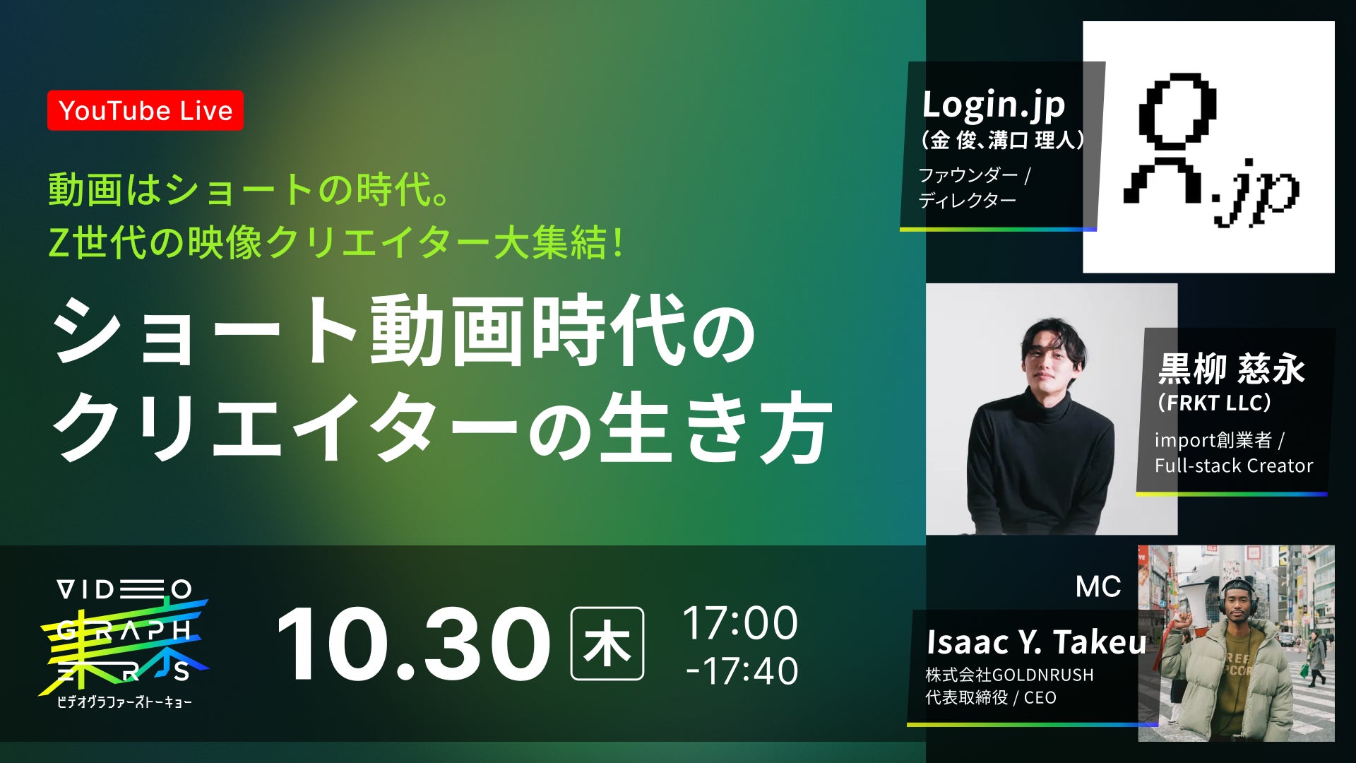 動画はショートの時代。Z世代の映像クリエイター大集結!ショート動画時代のクリエイターの生き方(登壇者:Login.jp(金 俊、溝口 理人)/黒柳 慈永/Isaac Y. Takeu)
