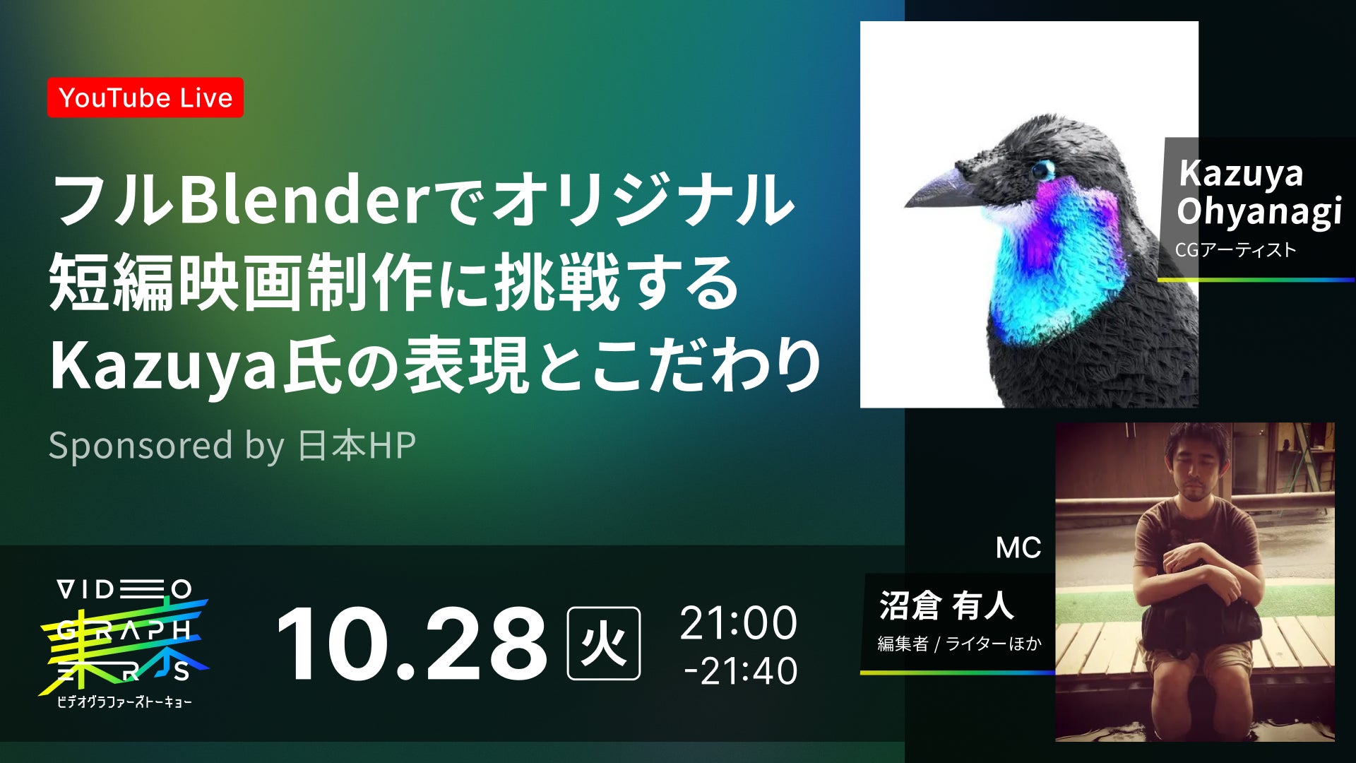 10/28(火)21:00〜 フルBlenderでオリジナル短編映画制作に挑戦するKazuya氏の表現とこだわり
