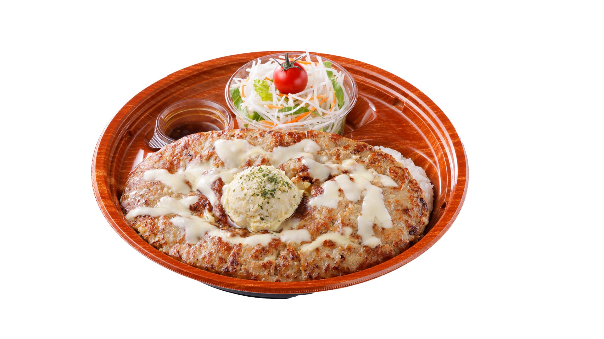 通常の3倍の量のポテトサラダととろけるチーズを中にも上にも贅沢に使用した一品。専用の成型器でかたどり丁寧に焼き上げています。合計400gのボリュームあるパティでポテサラパケットを丁寧に包み込んでおり、食べ応え抜群です。