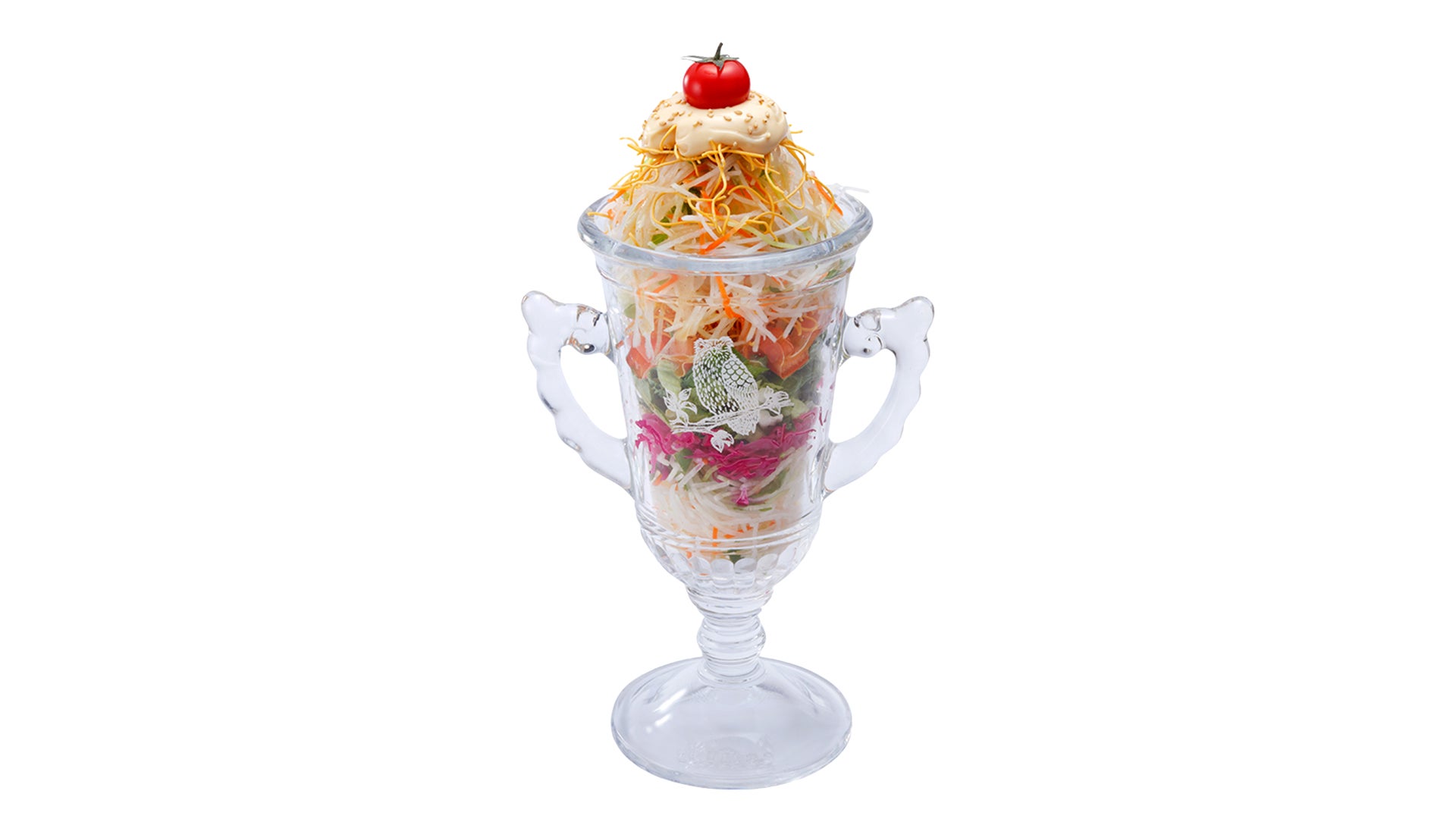 サイドメニュー人気No.1のびっくりフライドポテトLサイズを2倍量にした「ガリバーフライドポテト」と、オリジナルブレンドのスパイスでちょっぴり刺激的に仕上げた「ガリバースパイシーポテト」。さらに今しか食べられない「ガリバーサラダ」は、10種類の野菜を使用し、パリパリ麺の新食感が愉しめる高さ25センチの巨大グラスに入れて提供いたします。オリジナルドレッシングとマヨネーズ風ドレッシング2層の味が全体に行き渡り、紫キャベツピクルスの酸味と甘味がアクセントになっています。