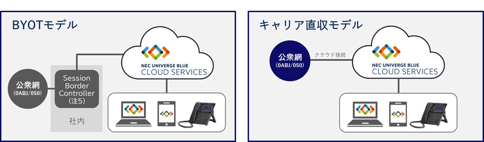 PBXやキーテレフォンの初期導入コストを抑えたUNIVERGE BLUEフルクラウド構成にて、2025年4月に提供を開始したBring Your Own Trunkモデル(注3、以下BYOTモデル)に加え、2026年2月にキャリア直収モデルを発売します。