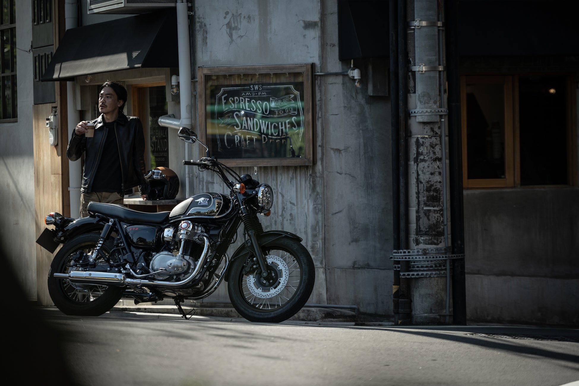 およそ一世紀も時代を遡る1924年より、「大排気量」で「高性能」、「高品質」をうたい、当時、日本のライダーたちから憧憬の的となった「メグロ」ブランド。「MEGURO K3」は、日本の大型スポーツバイクの歴史を紡ぐカワサキの記念碑的モデルとして登場しました。カワサキのビッグバイクヒストリーの幕開けを飾ったメグロのテクノロジー。その歴史に敬意をこめて造り上げられた「MEGURO K3」には、カワサキが築き上げてきた最新のテクノロジーやクラフトマンシップが惜しみなく注ぎこまれています。存在感のある美しいエンジンや流麗なタンク形状、入念に仕上げられた塗装、そしてホイール、シートがバランスよくまとめられたそのフォルムは、スポーツバイクメーカーとして日本初のブランドとなった「メグロ」の歴史を引き継いだカワサキの誇りであり、伝統を決して途絶えさせないという決意の表れ。重厚な雰囲気が漂う車体にまたがって走り出せば、力強いブランドの息吹を上質な乗り味の中に感じることができるでしょう。