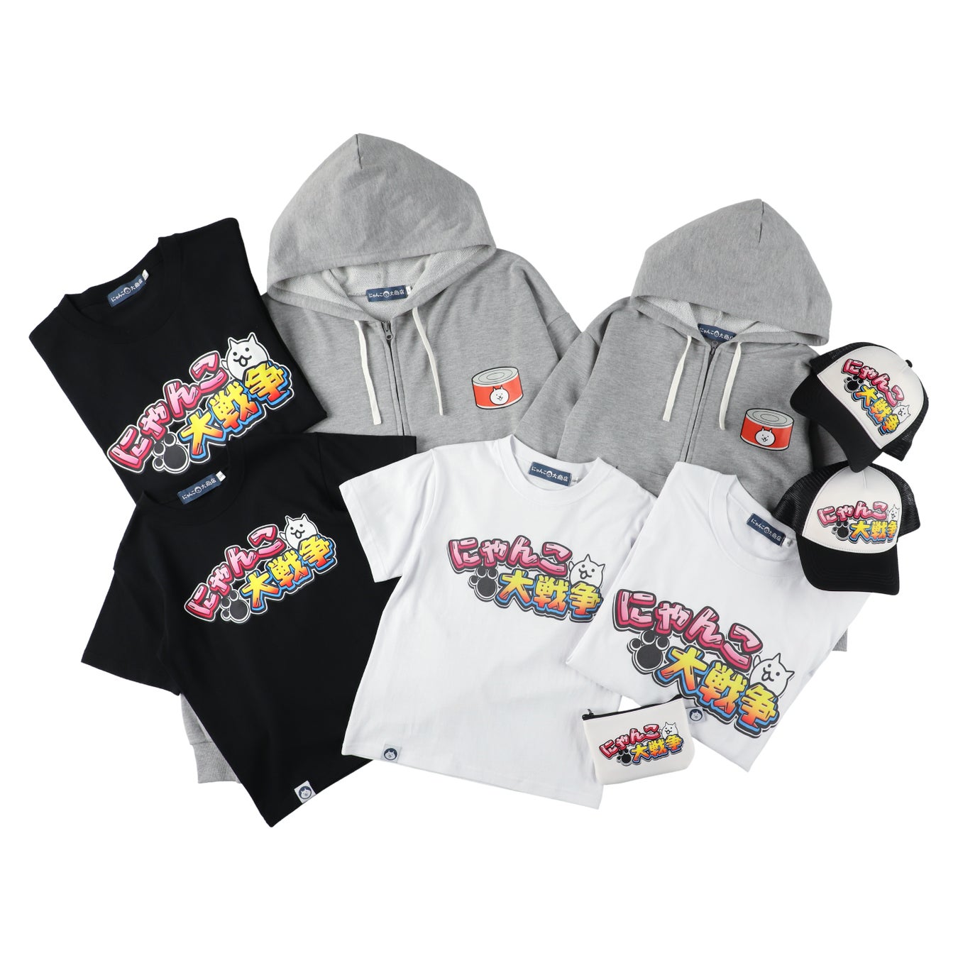 『にゃんこ大戦争』のロゴデザインをモチーフにしたアパレルグッズ
