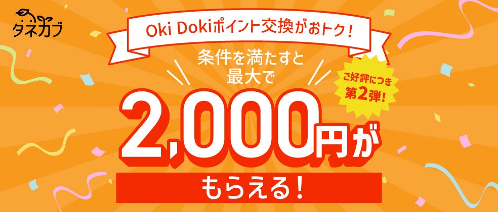 Oki Dokiポイントからタネカブフリーポイントへの合計交換数によって最大2,000円をマネックス証券の証券口座にプレゼント
