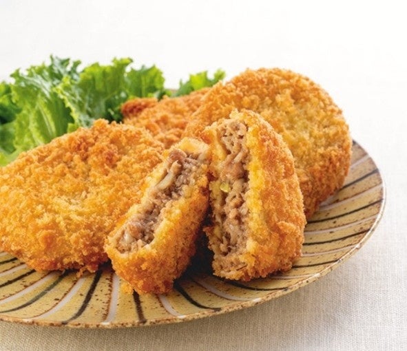 北海道産玉ねぎに北海道産の黒毛和牛をたっぷり使用した贅沢なメンチカツです。こだわりの衣には、パン粉から製造した北海道産小麦100%の自社製パン粉を使用。サックリとした食感に仕上げ、冷めても美味しくいただけます。