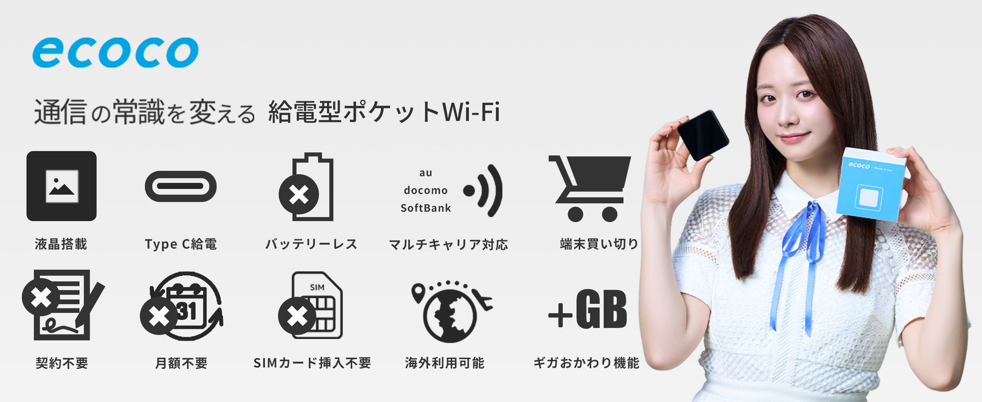 契約不要・月額不要・バッテリーレスの次世代ポケットWi-Fi 「ecoco(イココ)」 は、