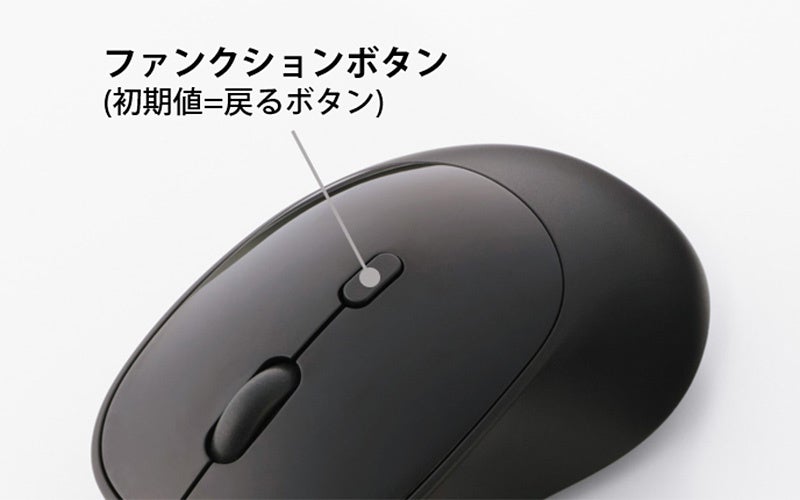 ファンクションボタンには、お好みの機能を割り当てられます。初期設定では、Webブラウジングに便利な「戻る」機能が割り当てられています。ジェスチャー機能やコピー機能など、他の機能を割り当てることも可能です。無料でダウンロードできるソフトウェア「エレコム マウスアシスタント」を利用してよく使う機能を割り当てることで、マウスを使った作業を効率化できます。