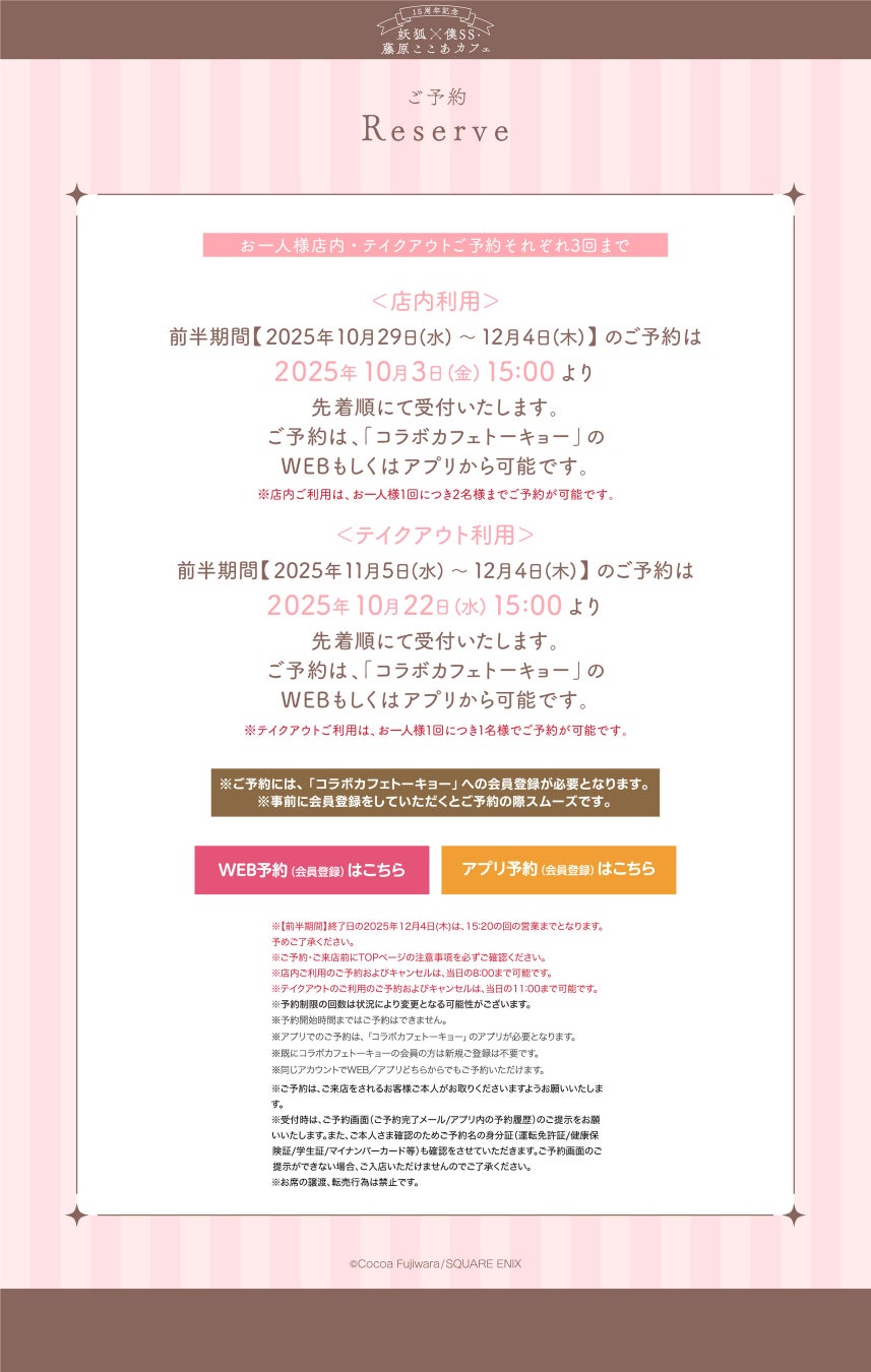 「15周年記念 妖狐×僕SS・藤原ここあカフェ」東京会場の前半期間【10月29日(水)~12月4日(木)】の店内予約を10/3(金)15時から開始いたします。