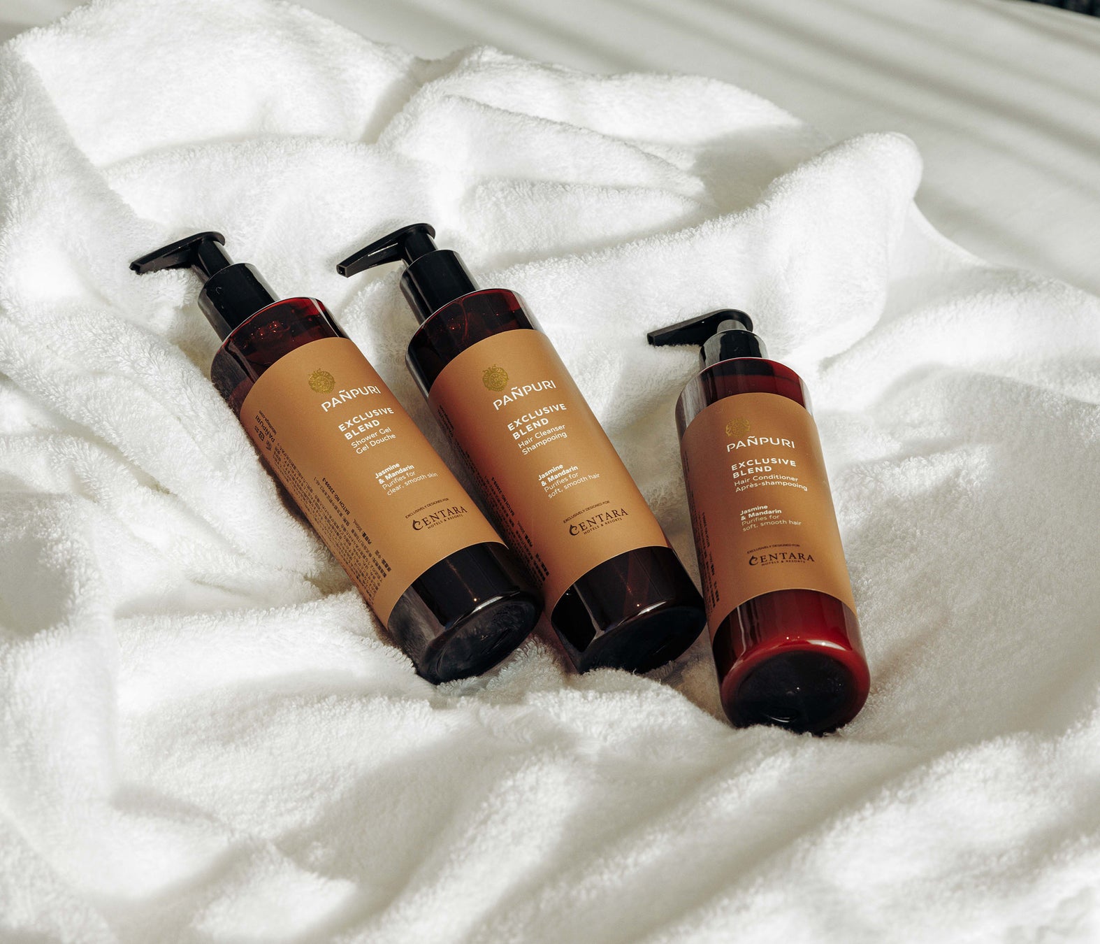 クラブフロアの全客室には、タイ発のオーガニックスキンケアブランド「PANPURI(パンピューリ)」のバスアメニティをご用意しております。世界中のラグジュアリースパで愛される、洗練された香りと上質なテクスチャーが、極上のバスタイムを演出します。