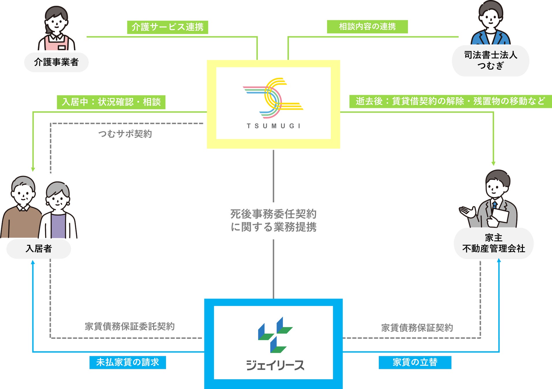 ジェイリース株式会社(本社:東京都新宿区・大分県大分市、東証プライム市場:7187、以下ジェイリース)は、シニア世代の生活支援並びに終活支援を行う株式会社つむぎシニアライフサポート(本社:大阪府大阪市 以下つむぎシニアライフサポートと表記)と死後事務委任契約に関する業務提携を開始したことをお知らせいたします。