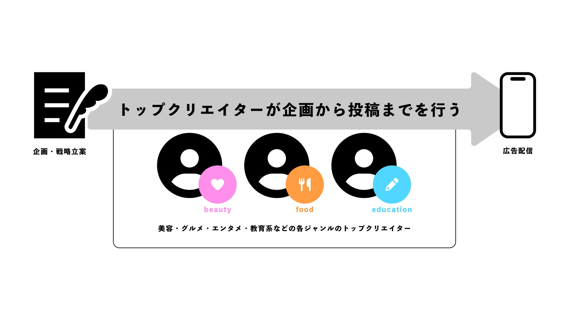 こうした背景を踏まえ、クリエイターの感性と発信力を最大限に活用することが、ブランド認知や売 上向上における効果的な方法であると考え、トップクリエイターズ社を設立いたしました。