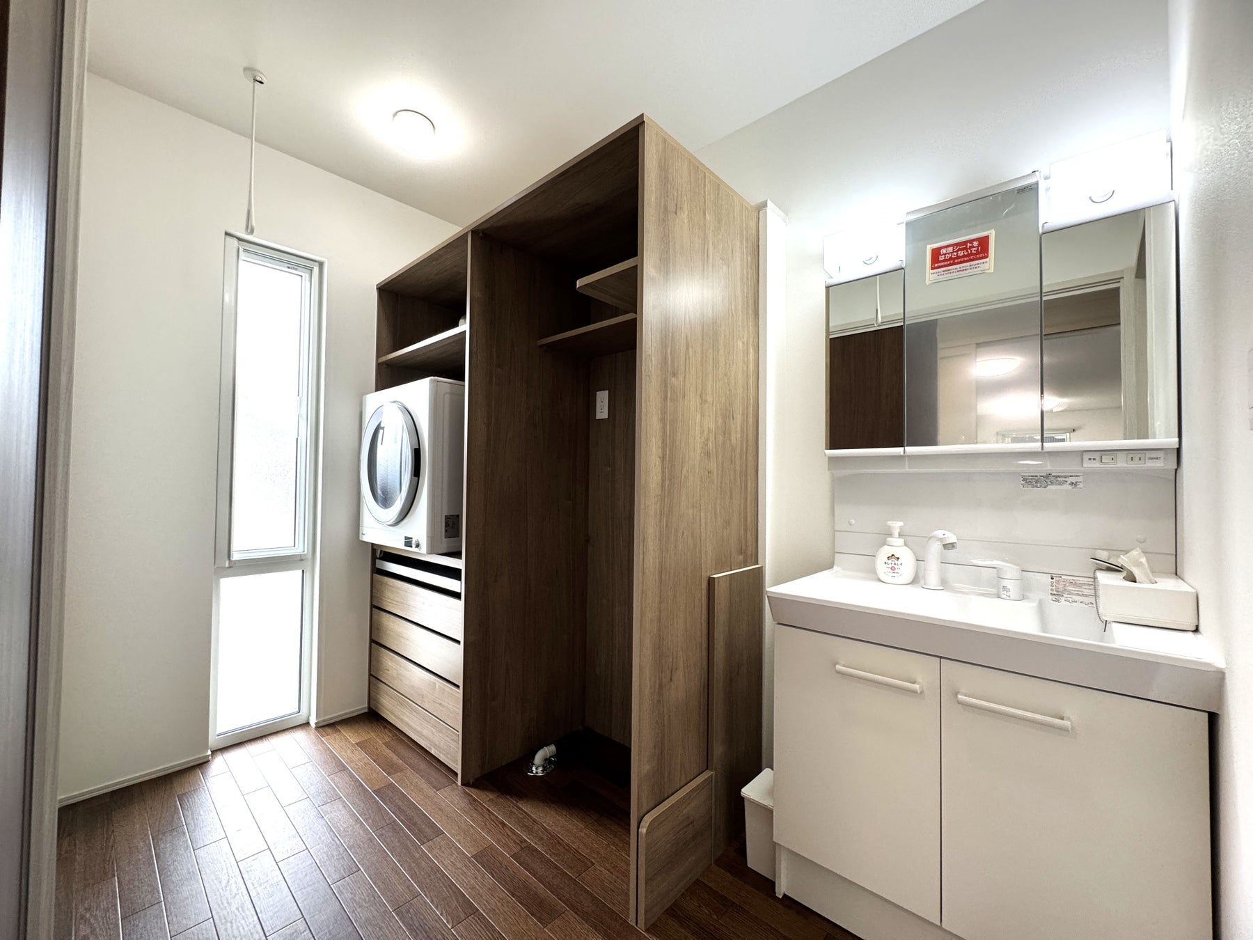 雨の日も安心のリンナイ社製ガス衣類乾燥機「乾太くん」、エアコン3台完備による快適な温度管理、効率的な家事動線で共働き夫婦の時間を創出します。