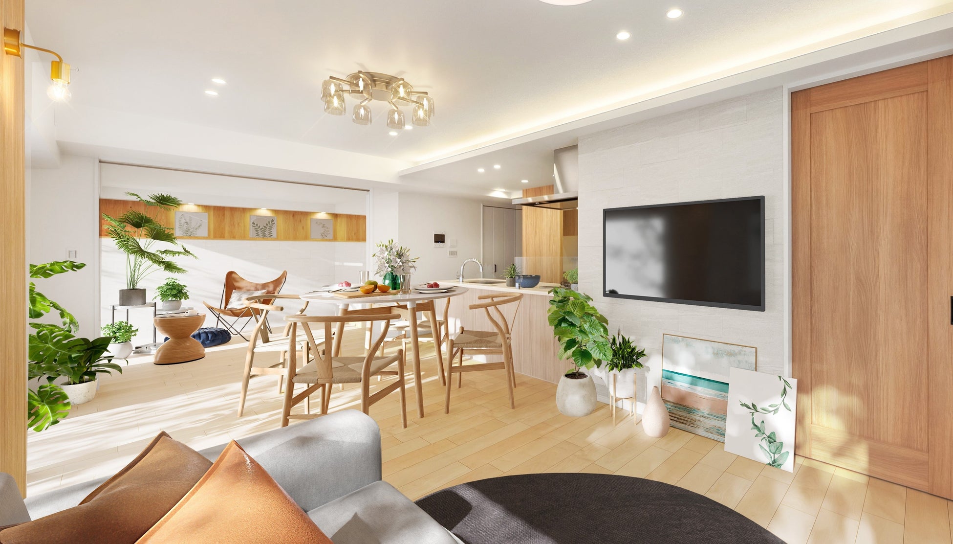 中古マンション買取再販事業において、木質化ブランド「RIZ WOODTM(ライズウッド)」を立ち上げ、内装木質化を推進しています。木質化により、住まいの性能向上とデザイン性を両立させ、中古マンションの新たな価値を創造しています。
