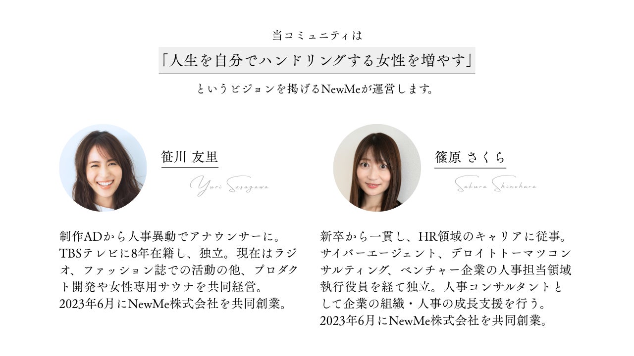 NewMeはこれまで、年間20回のキャリアイベント、メディア「NewMe Story」、YouTube「NewMe Ch」、転職支援サービス「NewMe Jobs」を通じて、女性が自分らしくキャリアを築くための情報発信や伴走を行ってまいりました。その中で寄せられたのが、「仕事を頑張る女性同士が安心して語り合える場が欲しい」という声です。