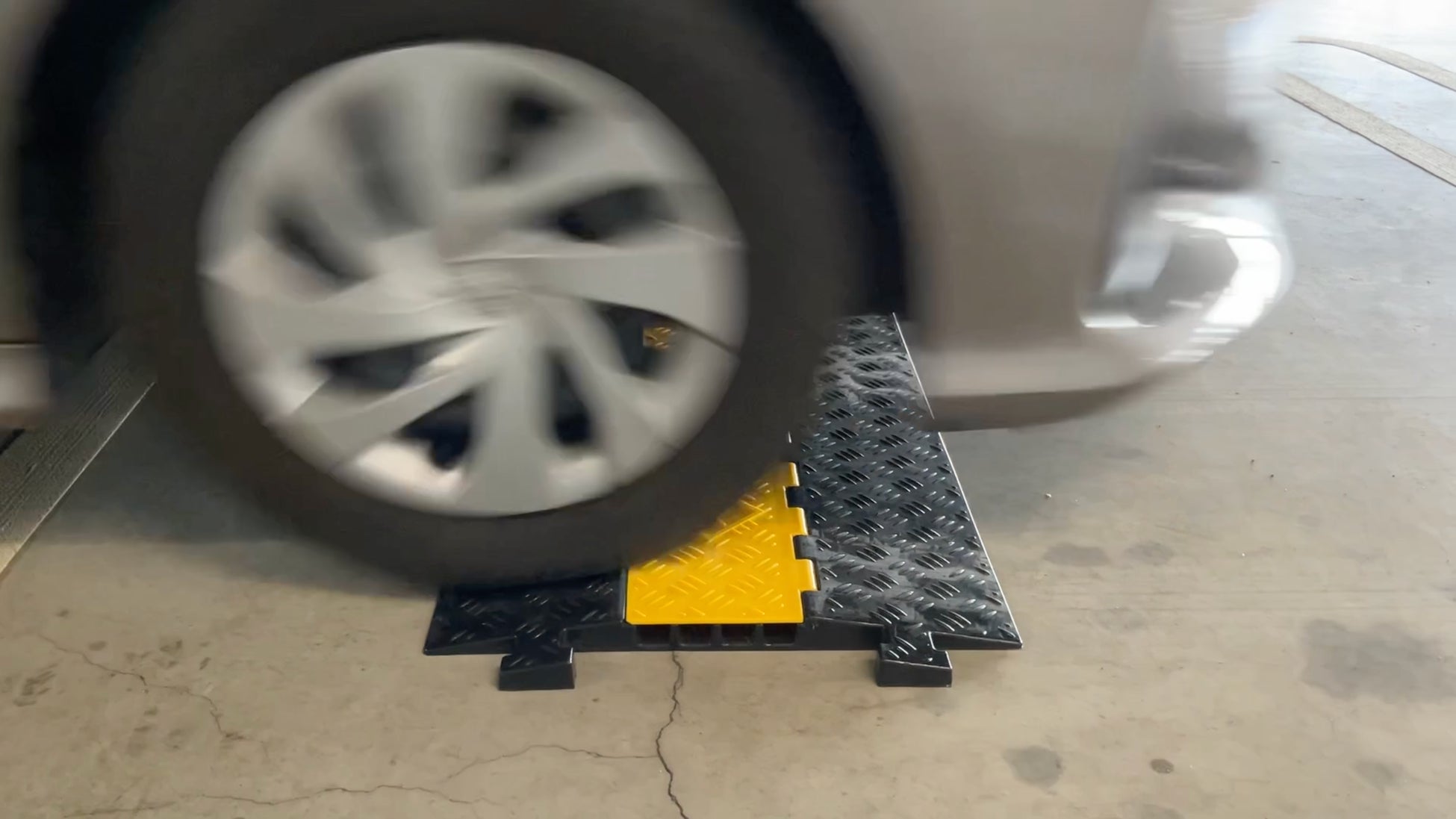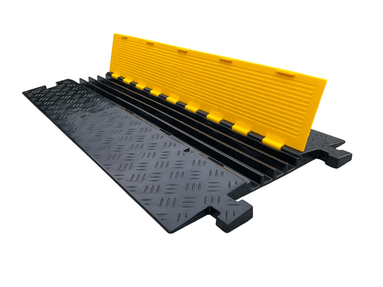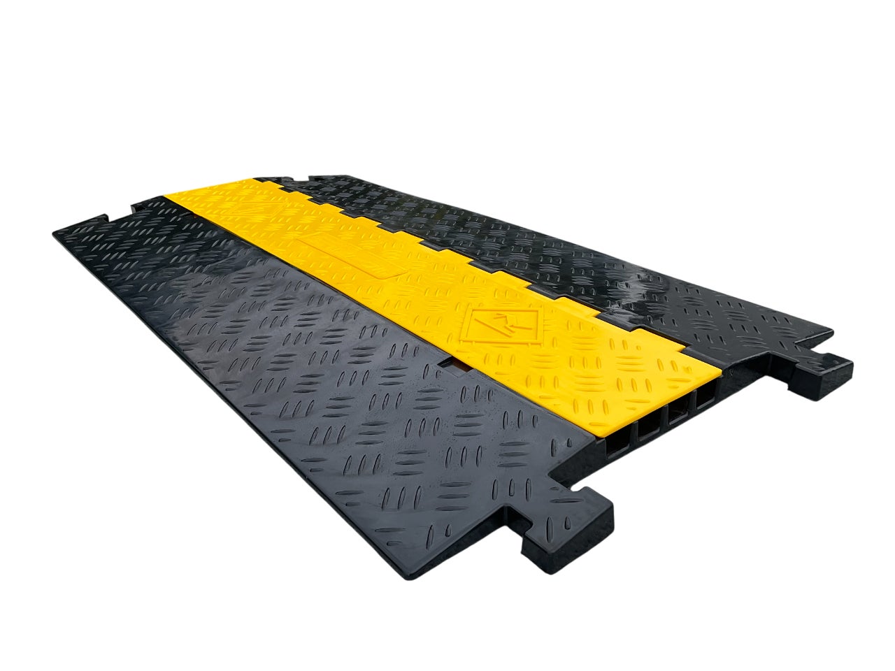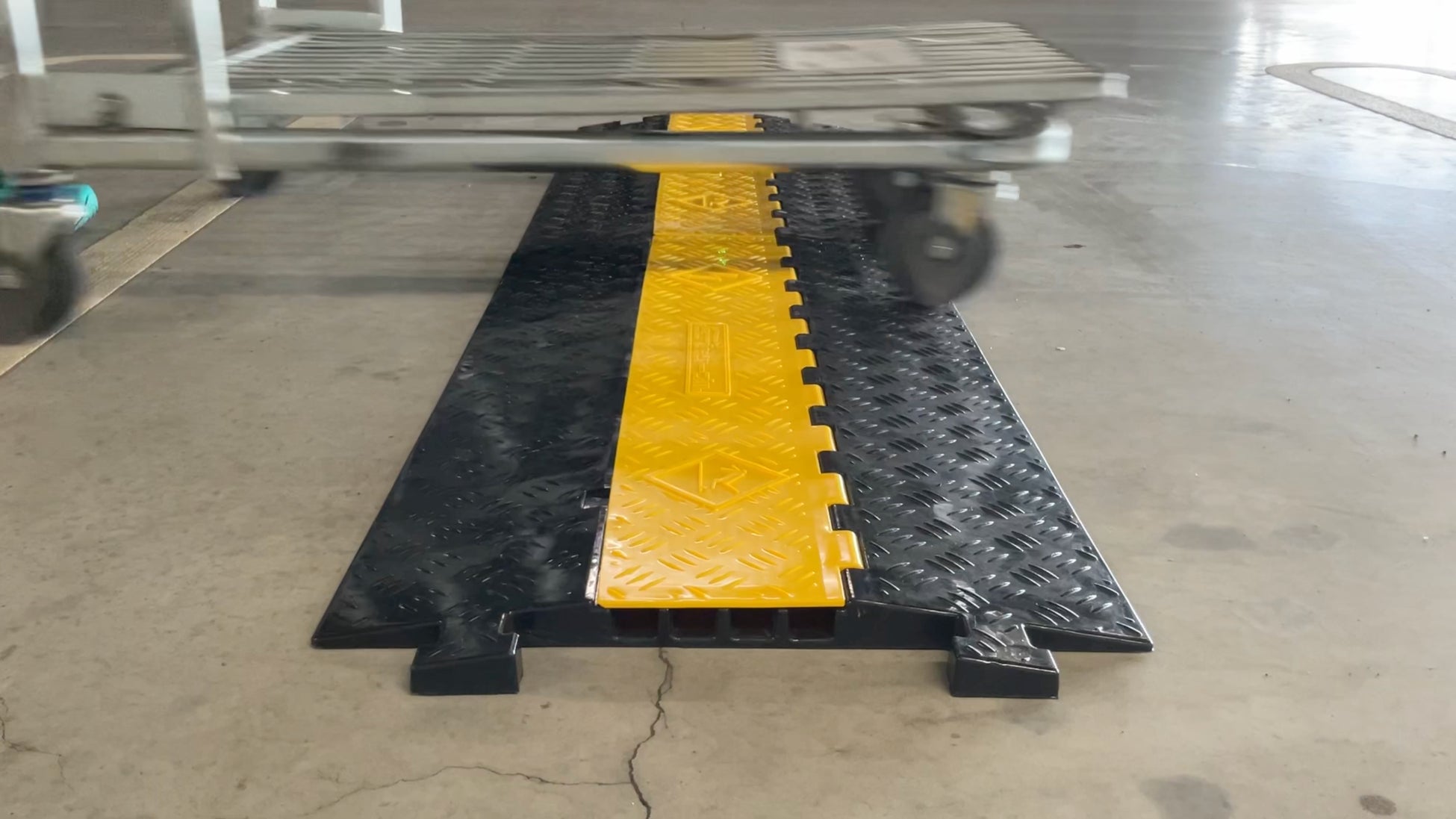 従来のケーブルプロテクター同様に、大型車両が通行できる強度を持ち合わせています。