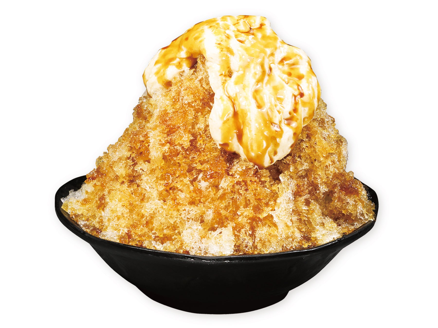「夢のふわ雪Ⓡ」は、天然水を長時間かけて冷やすことでできる、純度の高いかき氷専用の氷を使用し、専門店でも使われている高級かき氷機で削ることで、まるで“ふわふわとした雪”のような口どけをお楽しみいただけます。波照間産の黒糖使用の黒蜜と、北海道産きな粉を使用したきな粉クリームをトッピングし、甘みと香ばしさのバランスがとれた和のかき氷です。