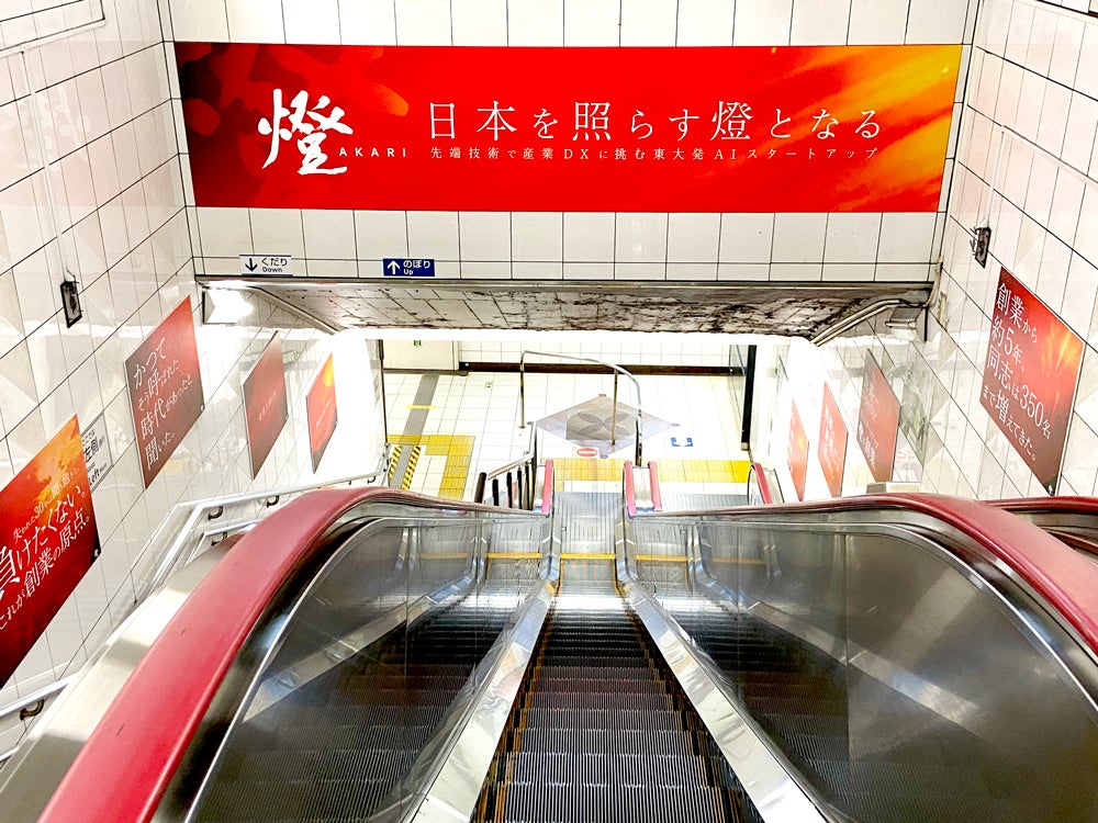 今回の企業広告は、東京大学発のスタートアップとして自社のルーツを象徴する地である本郷三丁目から、AIを始めとした最先端テクノロジーで産業DX、さらには日本全体の産業基盤のアップデートに挑むという当社の意志を広く発信することを目的としています。メインとなるエスカレーター横には、創業からの思いをストーリー仕立てのメッセージで表現しました。