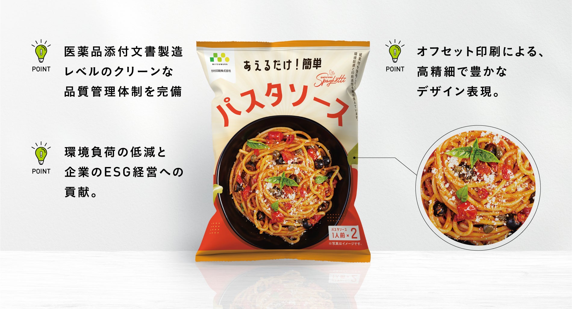 近年、世界的にプラスチックごみ問題が深刻化し、持続可能な社会の実現に向けた企業の役割が重要視されています。こうした社会的課題に対し、当社は長年の印刷事業で培ったオフセット印刷技術を応用し、環境配慮と高精細なデザイン表現を両立する「紙製軟包装」の提供を開始いたしました。