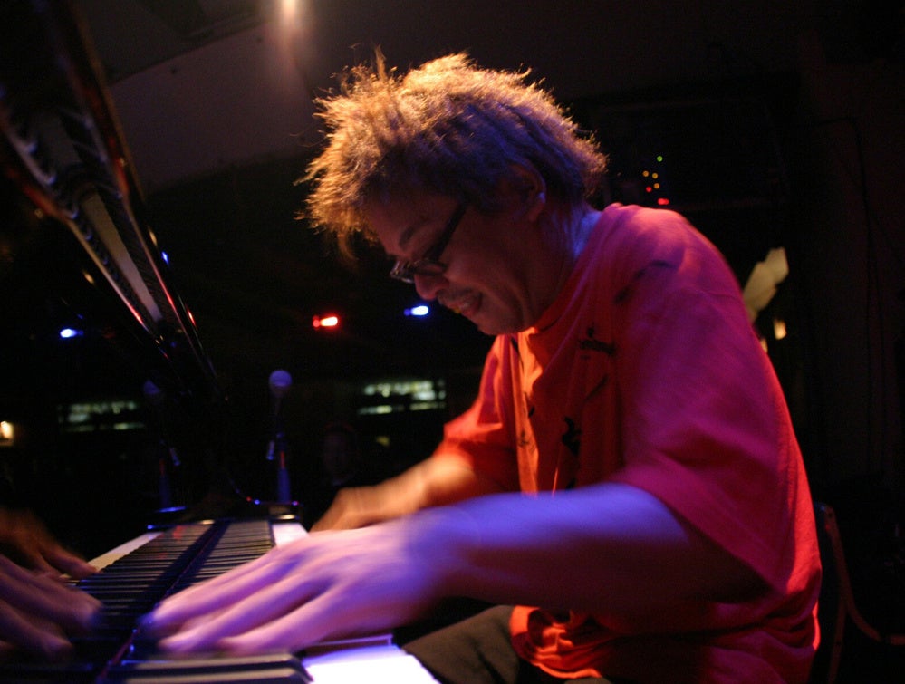 板橋文夫はピアノを中心に、各個性派メンバーと爆発的なエネルギーと即興の応酬が火花を散らすインタープレイを展開し聴く者を一気に「板橋ワールド」へ引き込みます。