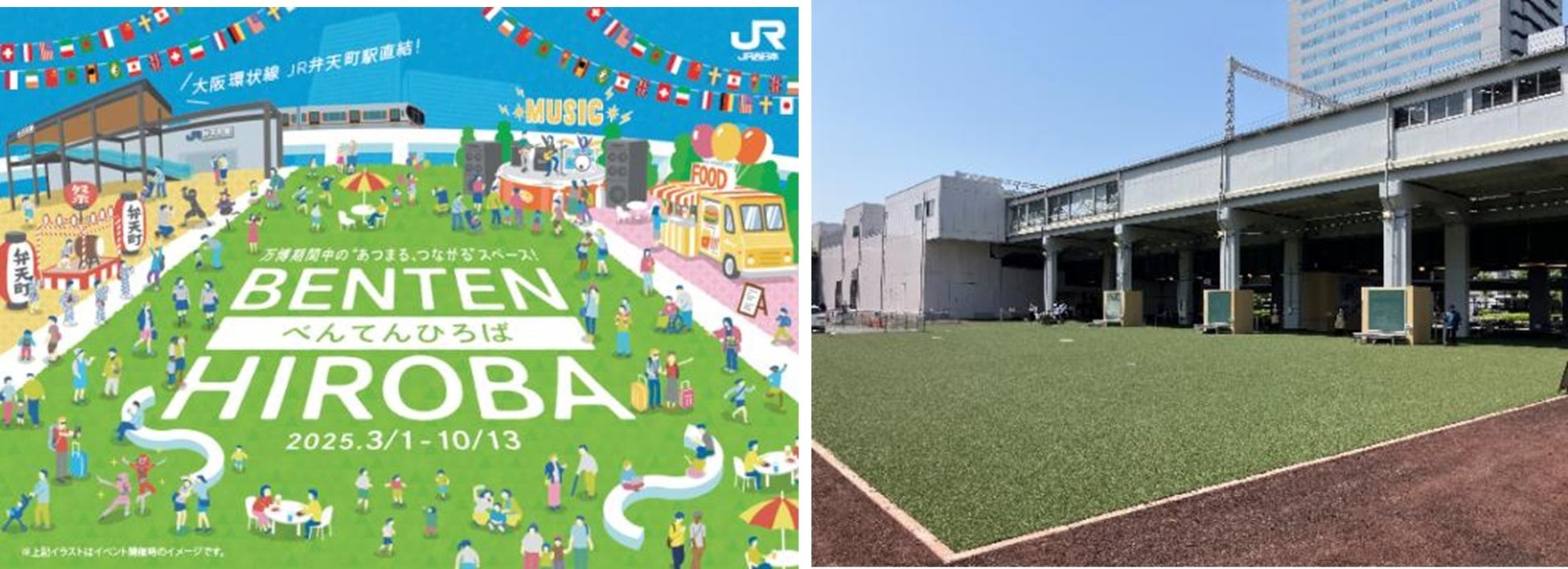 2025年3月1日(土)の新駅舎開業にあわせ、大阪環状線 弁天町駅前(旧交通科学博物館跡地)にオープンした、”あつまる、つながる“スペース「べんてんひろば」。これまで地域の方々や駅ご利用者をはじめ、国内外から来訪される万博来場者が立ち寄るなど、多様な方々にご活用いただけるスペースとして、さらにはイベント開催も実施するなど、駅周辺のにぎわい創出に取り組んでまいりました。
