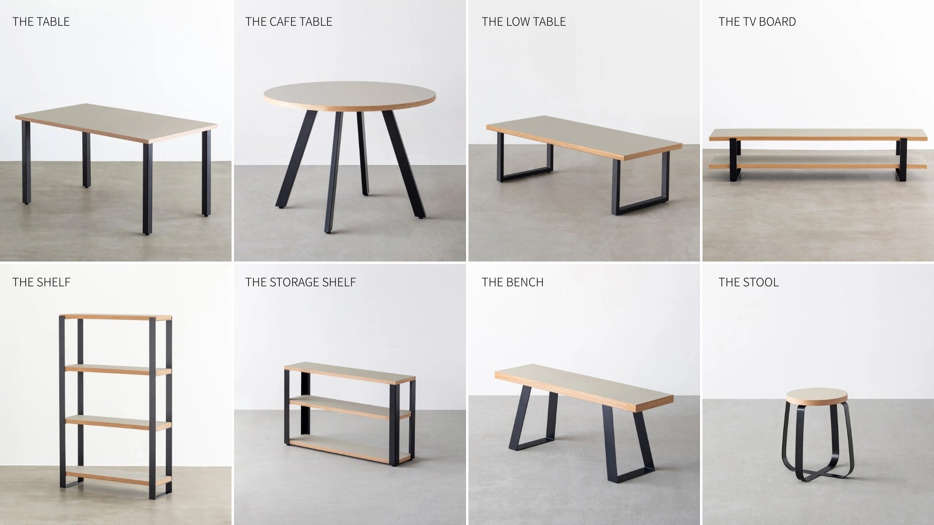 現在「THE TABLE」を中心にして、「THE CAFE TABLE」「THE LOW TABLE」「THE TV BOARD」「THE SHELF」「THE BENCH」「THE STOOL」などを取り揃えています。今後も「THEシリーズ」を拡充し、よりお客さまが自分らしいライフスタイルを思い通りにデザインできるようサポートしてまいります。