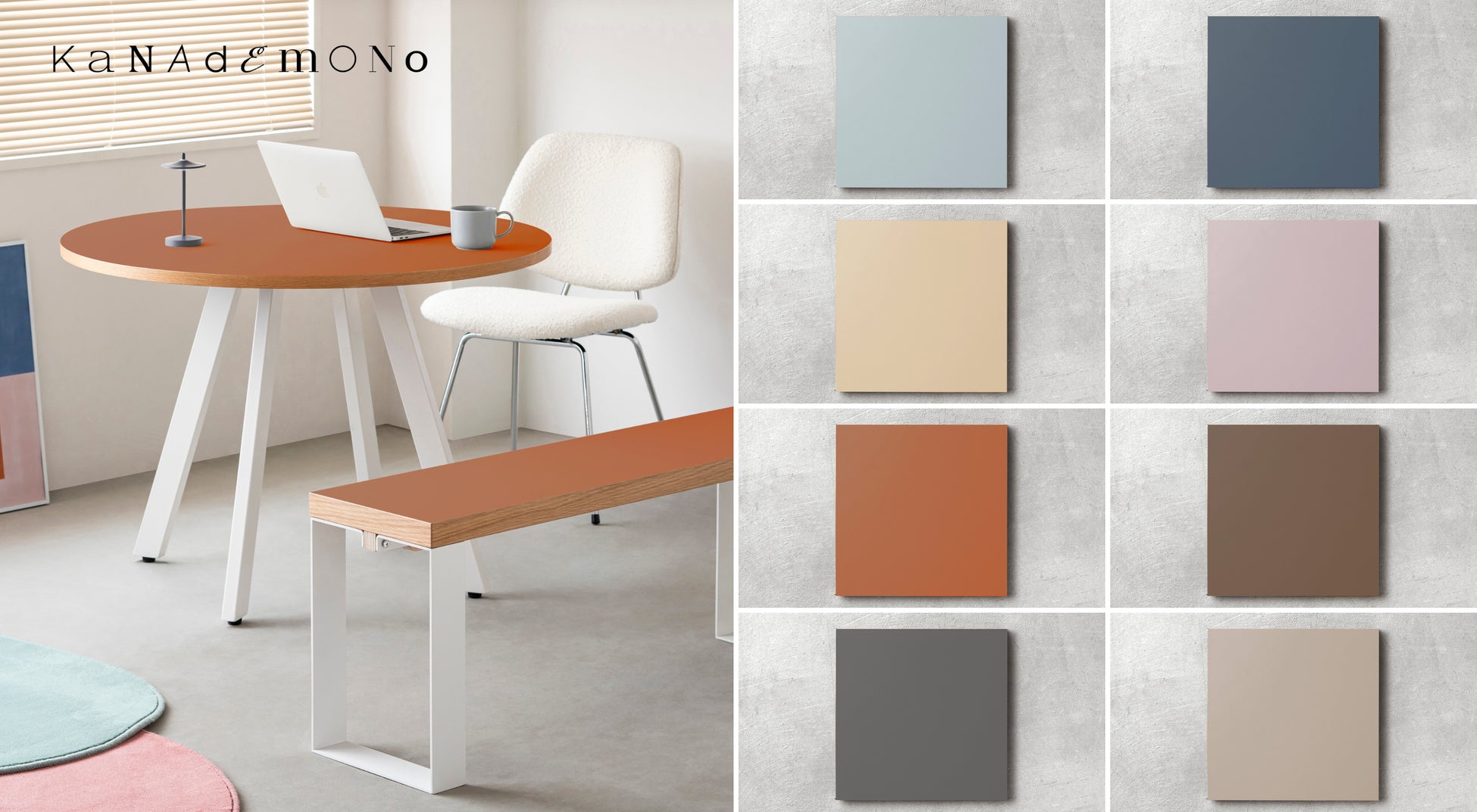 7000通り以上の組み合わせ × 1cm単位のサイズオーダーで、あなたに「ちょうど良い」を届けるパーソナライズ家具ブランド KANADEMONO を展開するルームクリップ株式会社 KANADEMONOカンパニー(以下、当社/本社:東京都渋谷区)は、2025年10月中旬よりリノリウム家具に新色8色を追加し、全32色の展開をオンラインストアにて開始いたします。