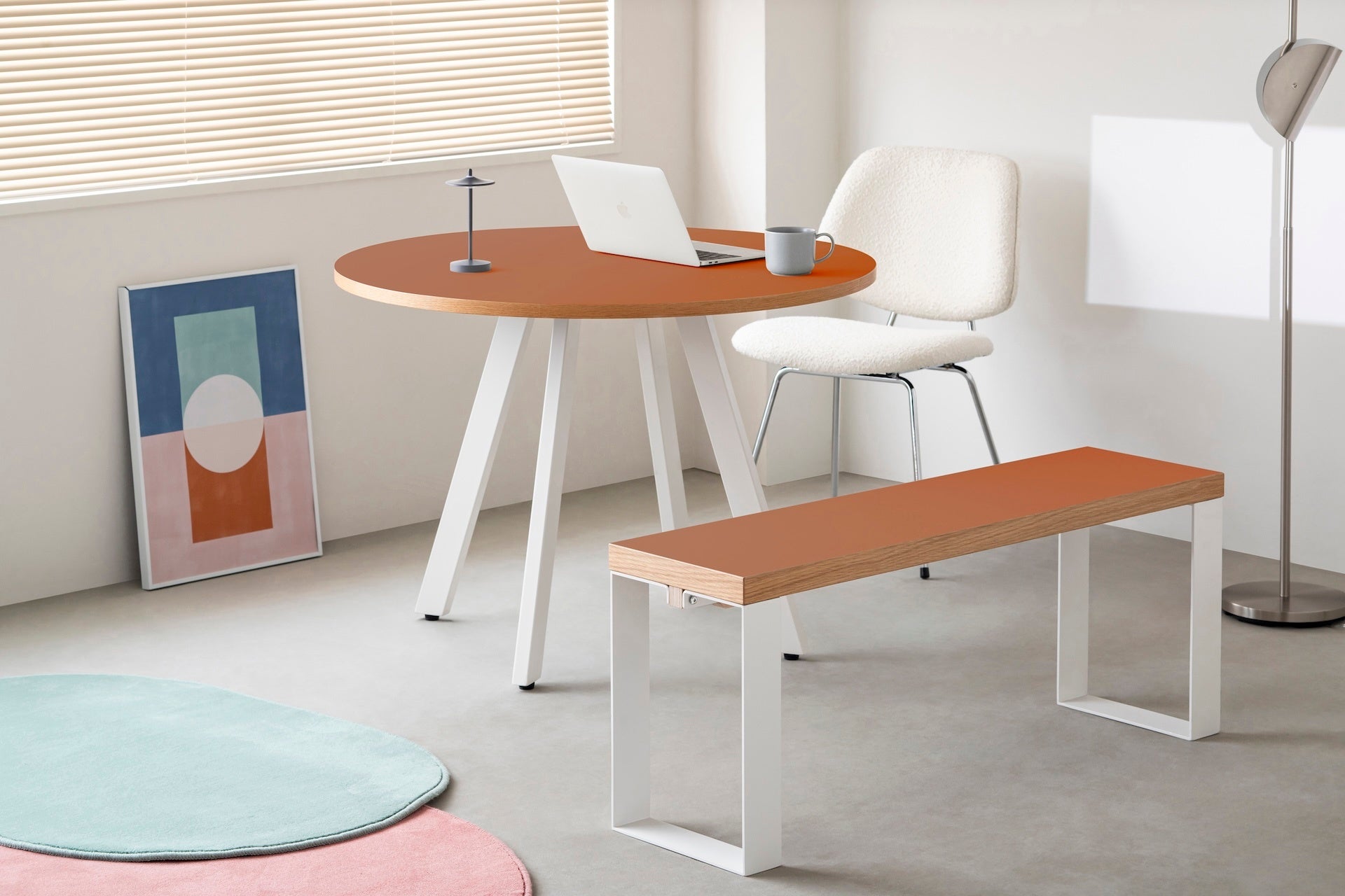 当社の主力コレクションとして展開する「THEシリーズ」は、さまざまな素材の天板と金属脚を組み合わせ、空間や用途に応じてパーソナライズ可能なシリーズです。すべてのシリーズで共通の素材を使用しているため、簡単に空間の統一感を作り出すことができます。