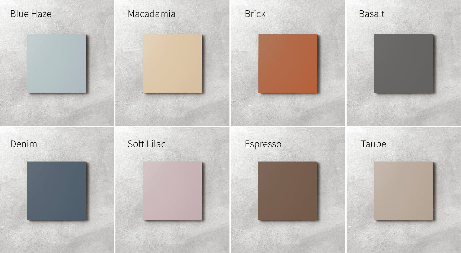 Blue Haze / Macadamia / Brick / Basalt / Denim / Soft Lilac / Espresso / Taupe を追加しました。