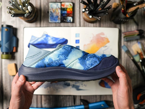 今回のデザインには、アーティストであり気候アクティビストのKEEN IMPACT MAKER、Max Romey(マックス・ロミー)氏が携わり、気候変動アクションを支援する新しい冬用スリップオンシューズを開発しました。Max Romey氏が、アラスカ州アンカレッジの自宅近くでアッパーデザインを描いていた際に、雪が作品の上に舞い落ち、唯一無二のフラクタル模様が誕生しました。自然のエッセンスが美しいカタチで、デザインに介入しました。