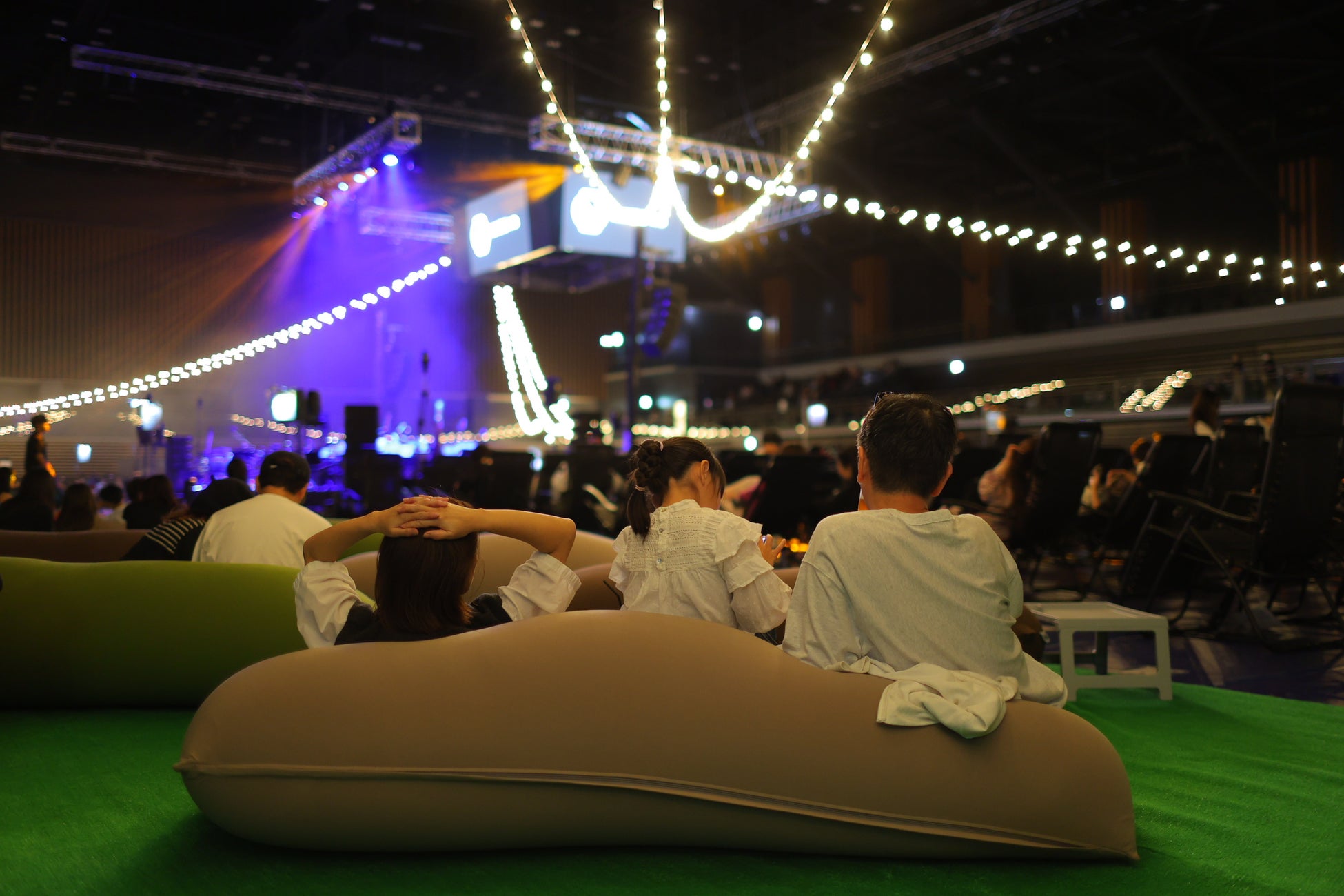 オーケストラの目の前で寝そべり、生演奏を浴びることができる、臨場感たっぷりのお席です。