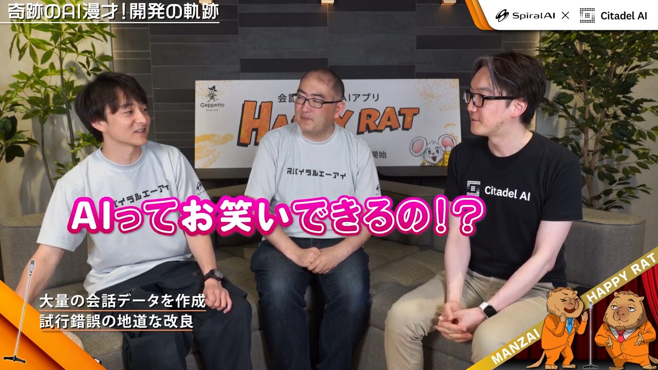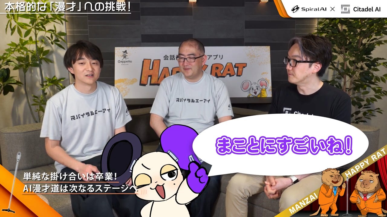 SpiralAIは、『HAPPY RAT』のAI漫才コンビ「オレンジ旋風」の開発過程をまとめた記事を公開。