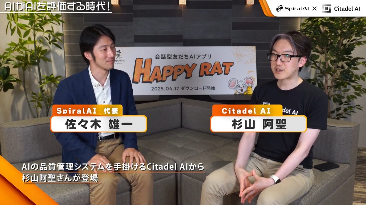 大規模言語モデルなどのAI技術を用いたサービスの開発を行うSpiralAI株式会社(本社:東京都千代田区、代表取締役:佐々木雄一、以下「SpiralAI」)は、Citadel AI株式会社 杉山阿聖氏、株式会社Yuiga-Dock 直井啓訓氏をゲストに迎えた特別対談を、SpiralAI公式YouTubeチャンネルにて公開したことをお知らせいたします。