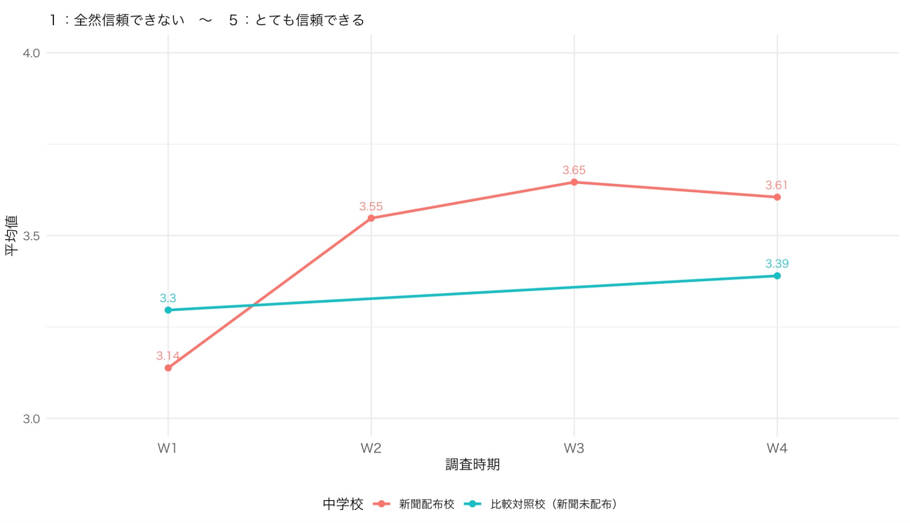 その結果、2025年4月から7月までの3ヶ月間、継続的に新聞に接触した児童たちは、そうでない児童に比べて、「新聞のニュースへの信頼」が上昇したことが分かりました。