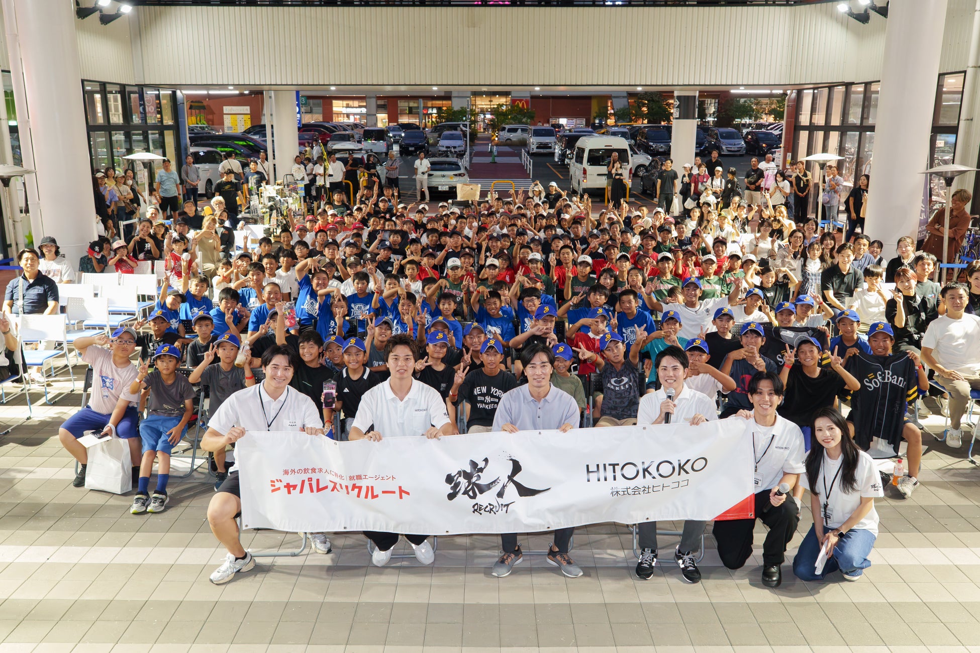 株式会社ヒトココ(本社:福岡市、代表取締役:山野成範)は、2025年9月23日(月・祝)にイオンモール香椎浜(Kashii iina Terrace)にて開催した『球人リクルート』プロモーションイベント「和田毅氏 × 高橋純平氏 トークショー」が、盛況のうちに無事終了したことをご報告いたします。