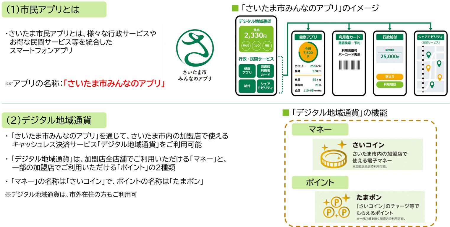 ※1 2024年7月31日にスタートした、デジタル地域通貨を含む、さまざまな行政サービスやお得な民間サービスなどをまとめたスマートフォンアプリです。地元の経済団体、企業などとさいたま市が出資し、さいたまの地域商社として設立された「株式会社つなぐ」がサービス運営を行っています。