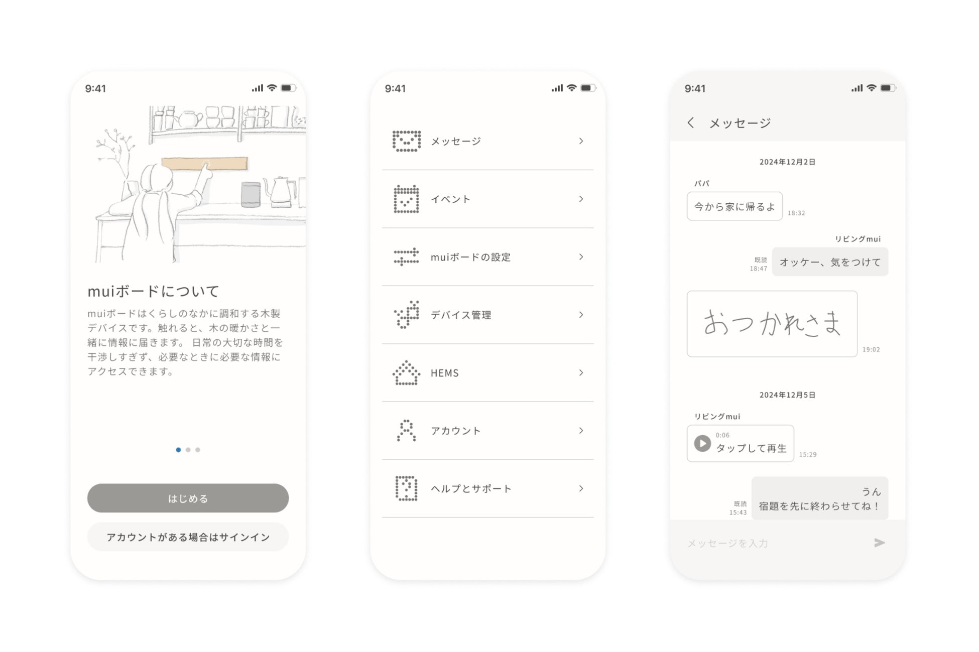 mui Labは、独自開発のエネルギーマネジメントAIと、それを家庭に普及させるためのハードウェア開発に取り組んでまいりました。これまでに、環境省のGX志向型住宅要件に対応したmuiボード第二世代を上梓。従来のHEMSコントローラーに「コミュニケーション機能」を融合することで、エネルギー管理を単なる制御システムから、家族の暮らしに寄り添う体験へと進化させています。