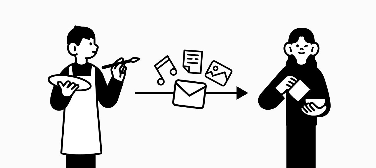 メッセージ内で画像の共有や、お仕事の依頼によるファイル納品などのやりとりも可能です。これまで外部ツールで行われていたやりとりが、note内でできるようになります。