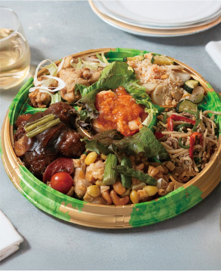 王道の中華惣菜を中心に、大海老や国産豚を使った料理を盛り合わせたボリューム感あるセットです。辛味や甘酸っぱさ、旨みが一度に楽しめ、世代を問わず喜ばれる内容に仕立てました。
