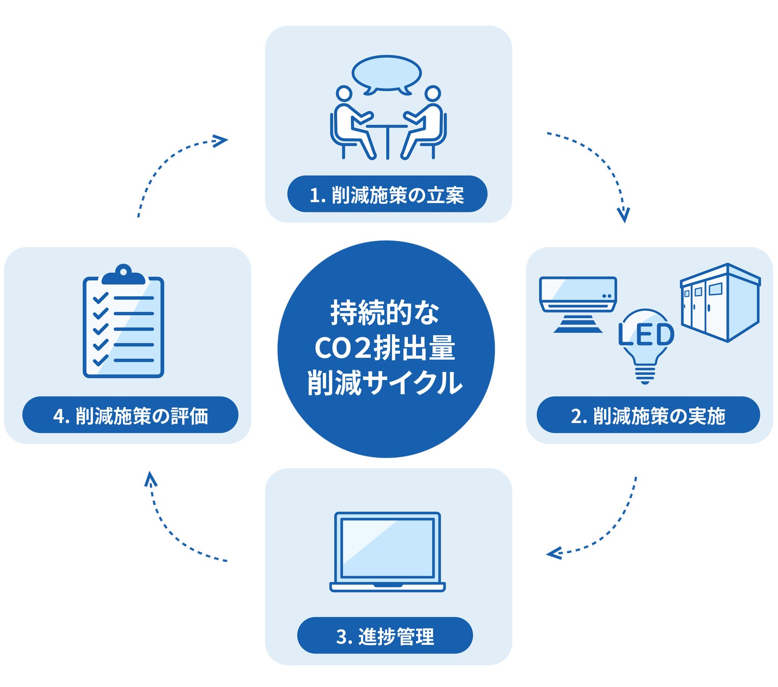 本サービスは、当社とアスエネのそれぞれの専門領域を掛け合わせることでCO2排出量削減に向けた立案から実行、改善までのPDCAサイクルを構築しカーボンニュートラル化に向けて持続的な支援を実施していくものです。